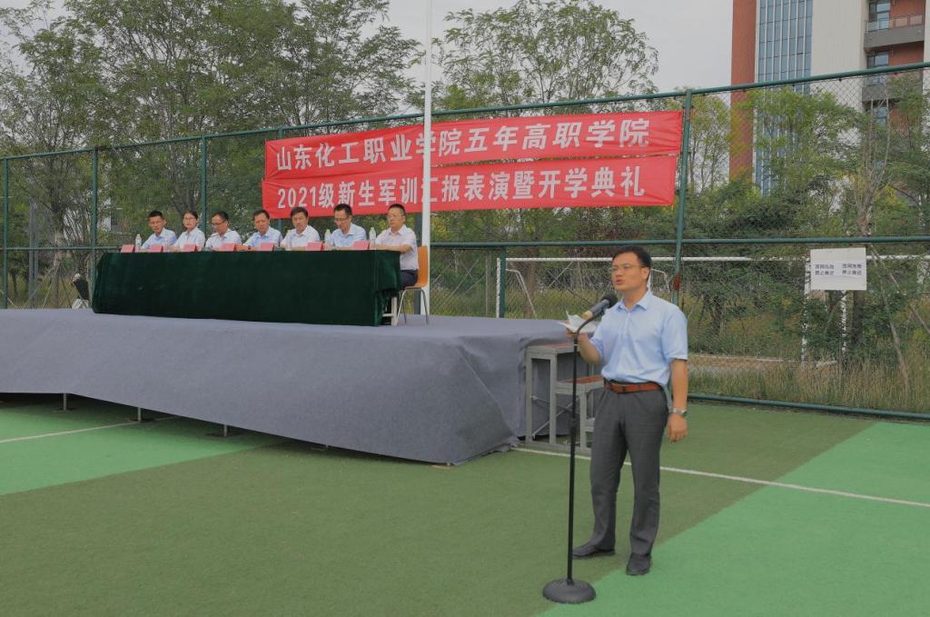 金秋送爽,意气轩昂。9月24日下午,五年高职学院2021级新生军训汇报表演暨开学典礼在学校足球场隆重举行。2021级新生们以昂扬向上的精神面貌接受检阅,宣告着为期半个月的军训生活正式收官。山东化工职业学院党委副书记潘慧、教务科研处副处长丁竹青、bob娱乐平台下载_贝博体彩app-投注|官网:工作处副处长陈恒亮和五年高职学院领导班子以及2020级、2021级全体师生参加大会。大会由五年高职学院党支部书记、院长宋学礼主持。
