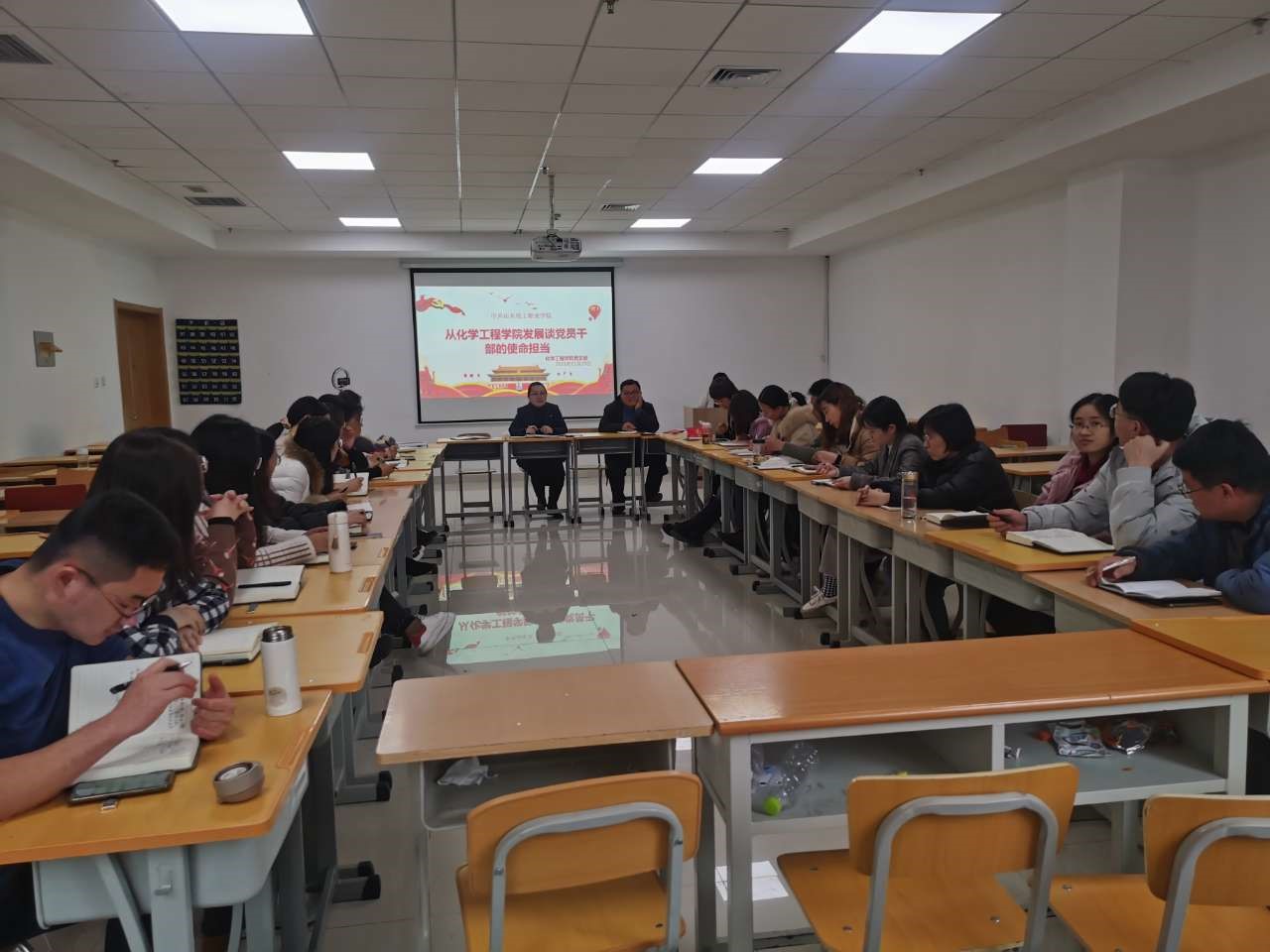 为加强党员党性教育,强化党员身份意识和责任意识,进一步坚定理想信念,激发广大党员教师的工作热情。化学工程学院党支部2021年11月29日下午在2308教室,采用线上线下相结合的方式,召开以“从化学工程学院发展谈党员干部的使命担当”为主题的党课学习活动。