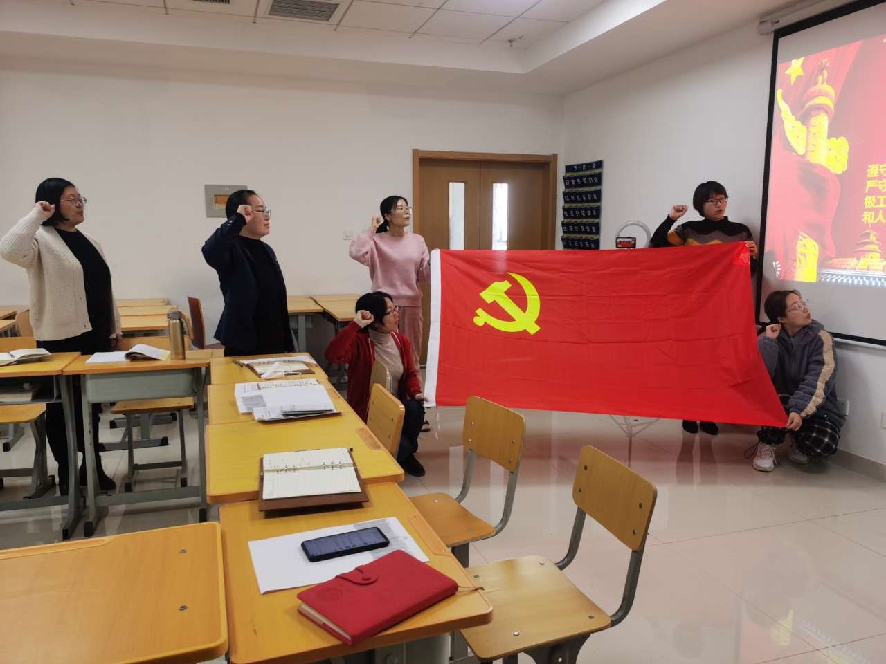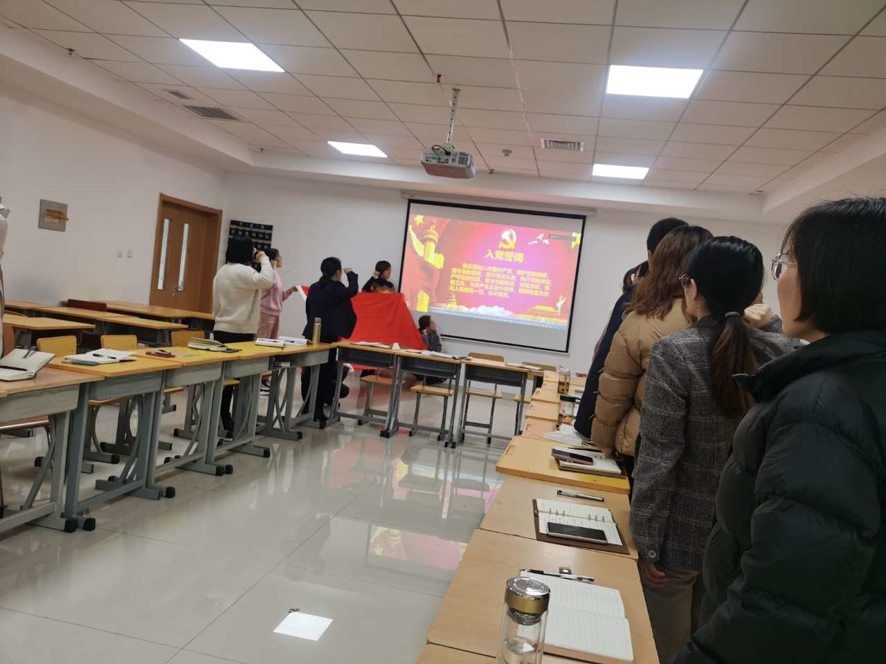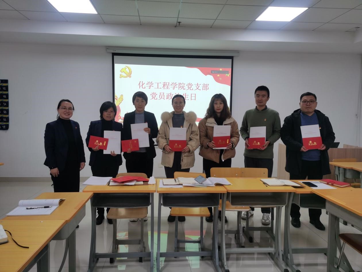 重温入党誓词,回忆初心。在学习活动开始之前,化学工程学院党支部为下半年10名党员过“政治生日”,化学工程学院党支部副书记葛彩霞和副院长吕宜春为在校的吕宜春、陈庆、陈学惠、王国青、程君霞、沙淑玉6名党员发放政治生日贺卡和党史书籍“生日礼物。希望党员教师加强理论学习,不断提升政治理论水平和教学技能,充分发挥党员的模范带头作用,继续为我院的高质量发展贡献力量。随后葛彩霞副书记领誓,全体党员重温了入党誓词,全体党员佩戴党员徽章,面对党旗,高举右手,重新体会当初入党时初心,思想上再一次经受“洗礼”。