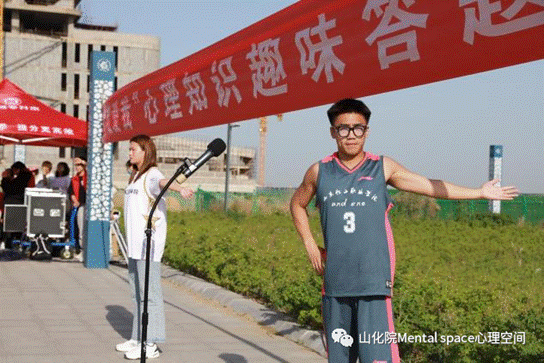 热身活动结束后,由心理健康教育指导中心姜老师带领全体师生开始进行心理知识答题竞赛。竞赛采用听题目、用手势作答和抢跑回答的形式。题目包含选择题和判断题。
