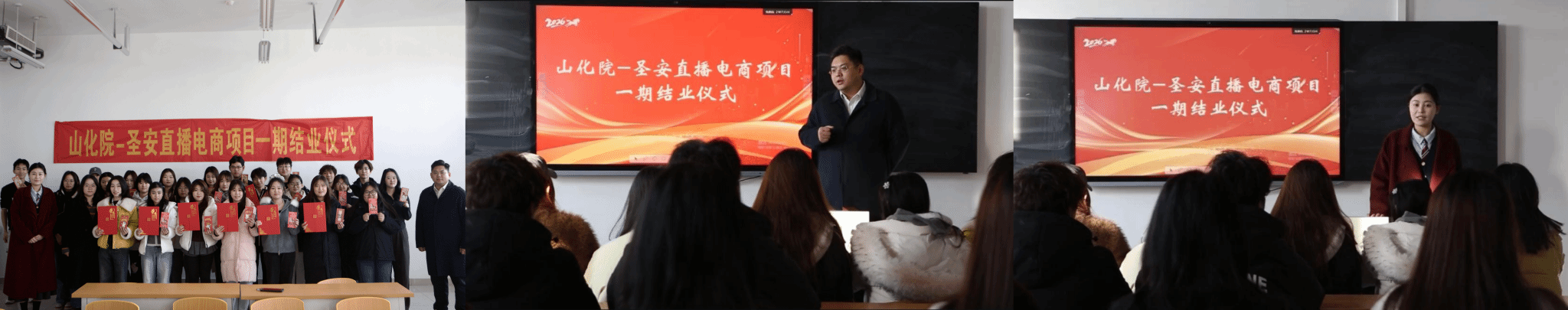 为深化产教融合、校企合作育人模式,培育适配行业发展需求的高素质应用型直播电商人才,1月9日上午,山化院-圣安直播电商项目一期结业仪式在4307隆重举行。山东圣安电子商务有限公司总经理范云鹏、网络营销与直播电商专业负责人郭晓琳及全体结业bob娱乐平台下载_贝博体彩app-投注|官网:齐聚一堂,共同见证学习成果,定格成长荣光。