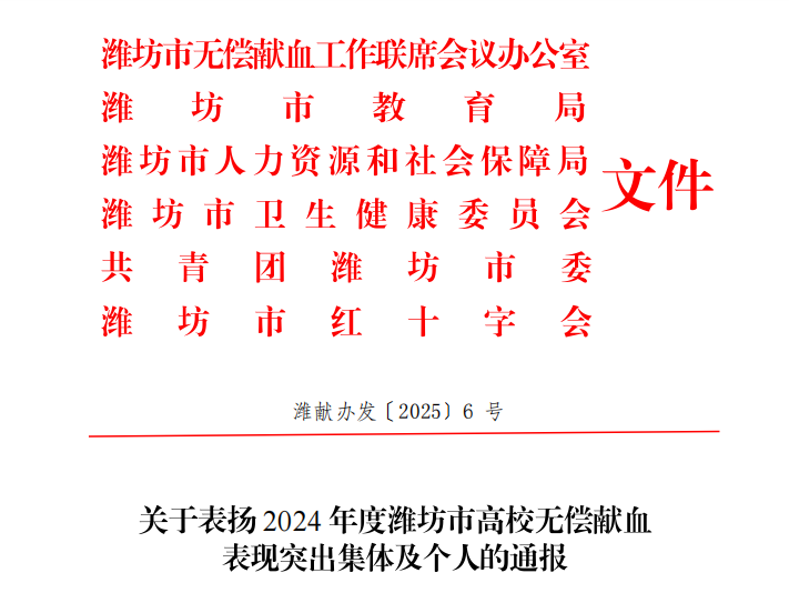 近日,潍坊市无偿献血工作联席会议办公室等6部门联合发出表扬通报,对2025年无偿献血工作表现突出的先进集体和人个进行表彰。学校评为潍坊市无偿献血组织表现突出集体,其中国凯航空学院斩获多项荣誉:学院党支部书记解素雯获评无偿献血工作表现突出个人,bob娱乐平台下载_贝博体彩app-投注|官网:张函菲获评无偿献血志愿服务表现突出大bob娱乐平台下载_贝博体彩app-投注|官网:,赵悦豪等30名同学获评潍坊市无偿献血爱心大bob娱乐平台下载_贝博体彩app-投注|官网:,这份亮眼的成绩单,是国凯航空学院长期深耕无偿献血等公益工作的有力见证。