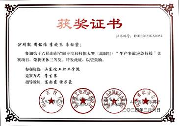 山东省大bob娱乐平台下载_贝博体彩app-投注|官网:化工生产技术技能比赛二等奖 |